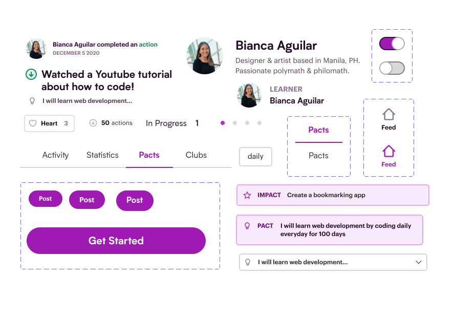 An all-in-one tracker & community for learning, a.k.a. the Strava for personal growth. First Place Runner-up of the Interhackt designathon. Co-designed with Nikki Datlangin.