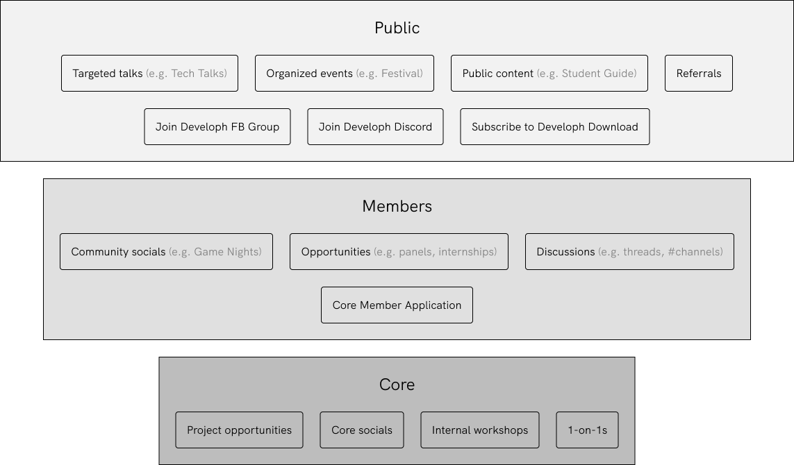 Developh is a student-led nonprofit accelerating technology & experiences for social good. One of our initiatives is running an online community for budding technologists & creatives in Southeast Asia. Our members mainly reside in our Facebook group, where we share events & programming (e.g. internships, talks, hangouts, mentorship).