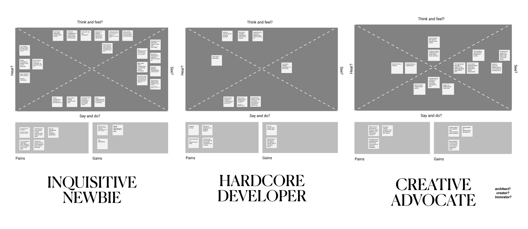 Making use of our third insight, we developed personas to empathize with our target audiences better. We assumed that solitary learners would seek guidance and self-awareness, while those who need a community would seek connection and accountability.