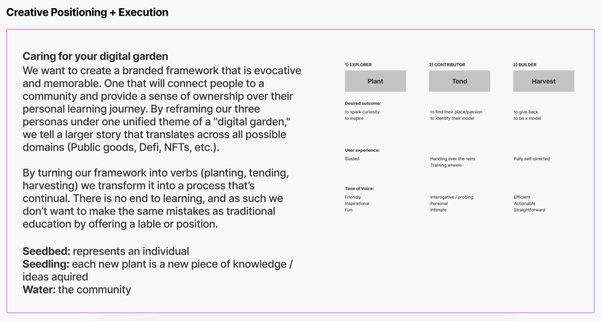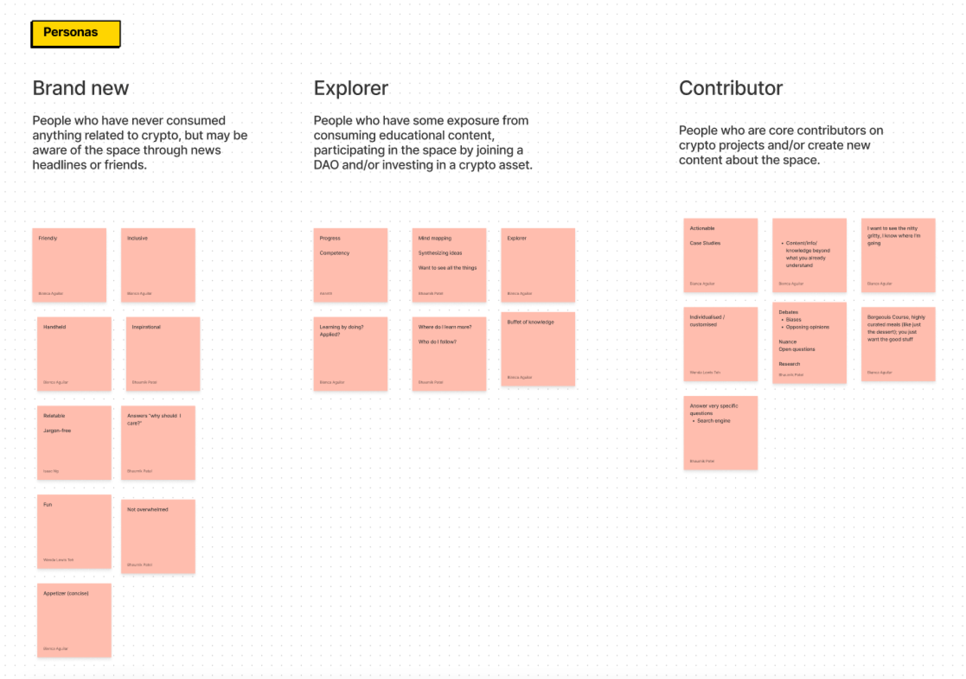 For our MVP, we decided to focus on a single persona and topic: DAOs for beginners.