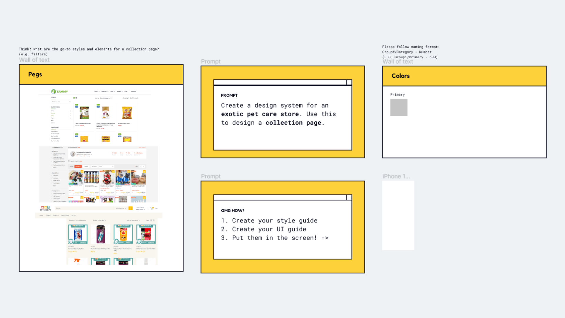 At the end, I prepared a group activity where the students had to create a design system based on a prompt, and apply this in designing a mobile screen. Initially, this was supposed to have facilitators; however, I requested for this too late, so I had to add more guides for the students (e.g. pegs, instructions, example design system pages).