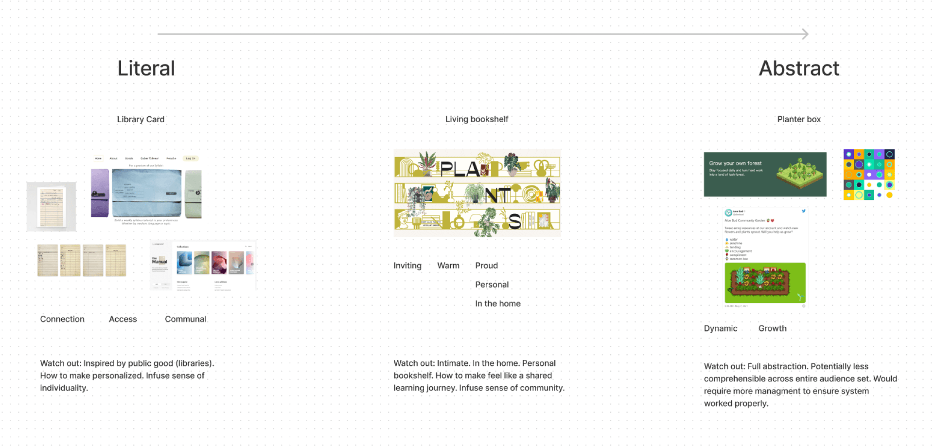 I started by collecting inspirations for the project's look and feel. He then put these all into an organized spectrum, which helped me be more intentional with my design approach.