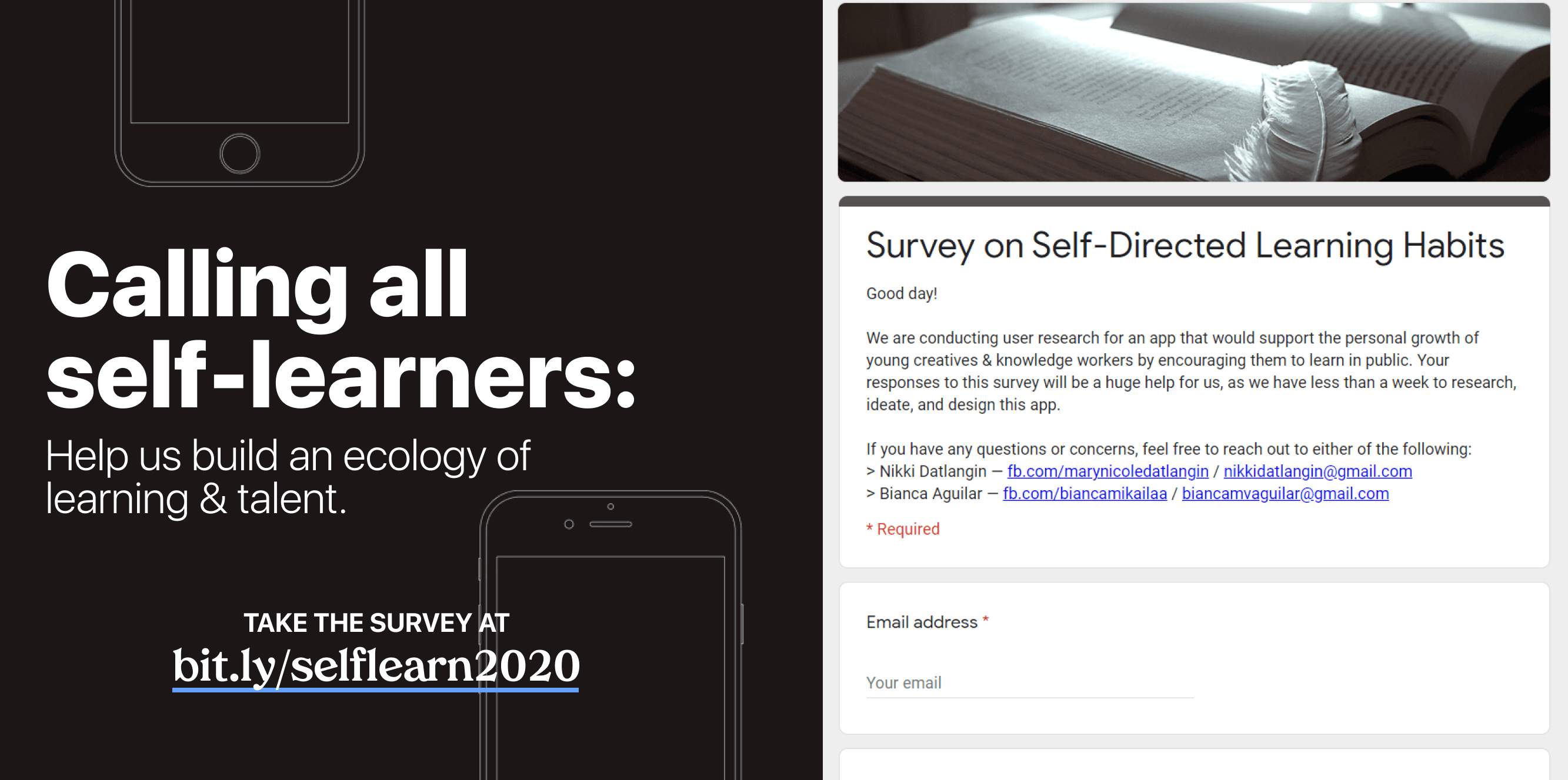 Then, we conducted user research our networks, targeting those who consider themselves self-learners. Our research objectives were learning: