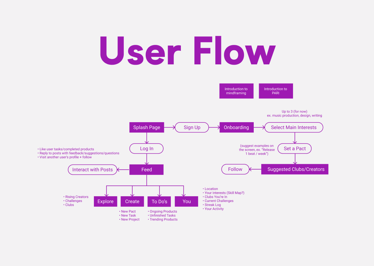 While conducting research, we came across Anne-Laure Le Cunff's mindframing: a neuroscience-backed framework for personal growth. We liked this because it was structured yet flexible enough for self-learners; she describes in a literature review: "Individuals can assess their own progress through the reflective practice of creating and publishing content throughout their self-growth process." Thus, mindframing became the foundation of our entire app.